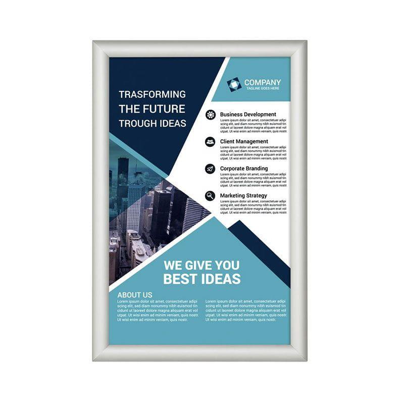Birincisi, 25mm profilli alüminyum çerçeve A2 yapısı kurumsal kimliğinize tam uyum sağlıyor. Dahası, A2 alüminyum çerçeve içinde şirket değerlerinizi ve motivasyon posterlerinizi şık şekilde sunabilirsiniz. Son olarak, 42x60cm çıtçıtlı çerçeve gönye köşe modeli ofis duvarlarınıza modern bir hava katıyor.
