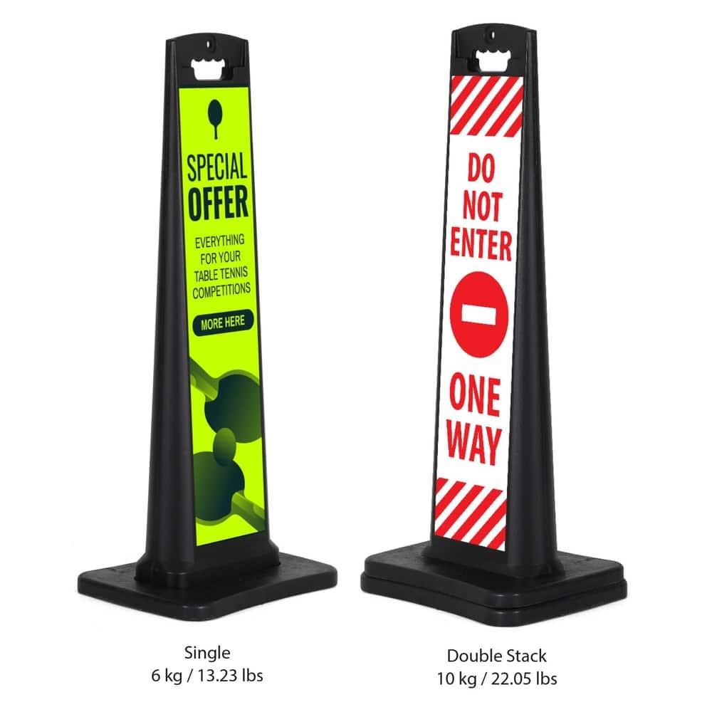 Geniş baskı alanına sahip reklam dubası, çift taraflı kullanım özelliği sayesinde hem araç hem de yaya trafiğinde maksimum görünürlük sağlar. İşletmenizin logosu, yönlendirme bilgileri veya kampanya duyuruları için ideal bir vale duba çözümüdür.