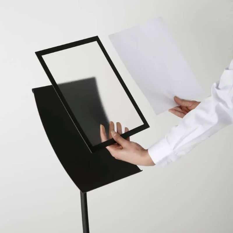 - Sağlam Taban: Ağır taban sayesinde Arc Manyetik Çerçeveli Pano A3 devrilmeden sağlam durur.