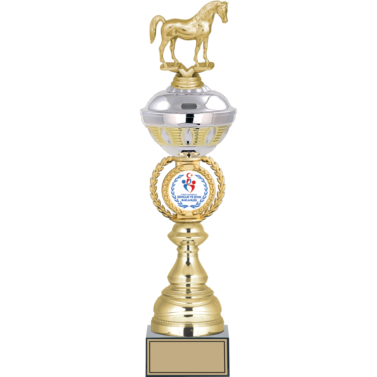 Kupalar / Figürlü Kupalar kategorisi altında yer alan At grubunda, 47, 44, 42 cm ölçüsüyle sunulan profesyonel bir üründür.