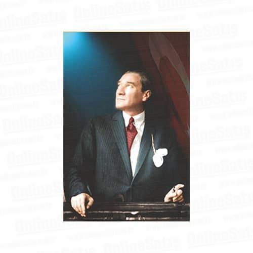 Dış mekan ve iç mekan kullanıma uygun raşel kumaş üzerine dispers boyalarla Atatürk fotoğrafı baskısı. Atatürk posterlerinde kullandığımız dispers boyalar sublimasyon boyaya göre daha uzun süre solmayan, yağmurda akmayan ve insan sağlığına zararı olmayan boyalardır.