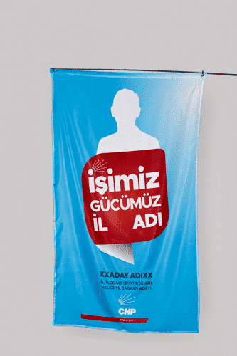 Yerel seçimlerde kullanılmak üzere Chp kurumsal kimlik kampanya ve yerel seçim kılavuzunda yayınlanan bina giydirmeleri ve afiş olarak kullanılacak kırlangıç bayrak ve seçim posteri.