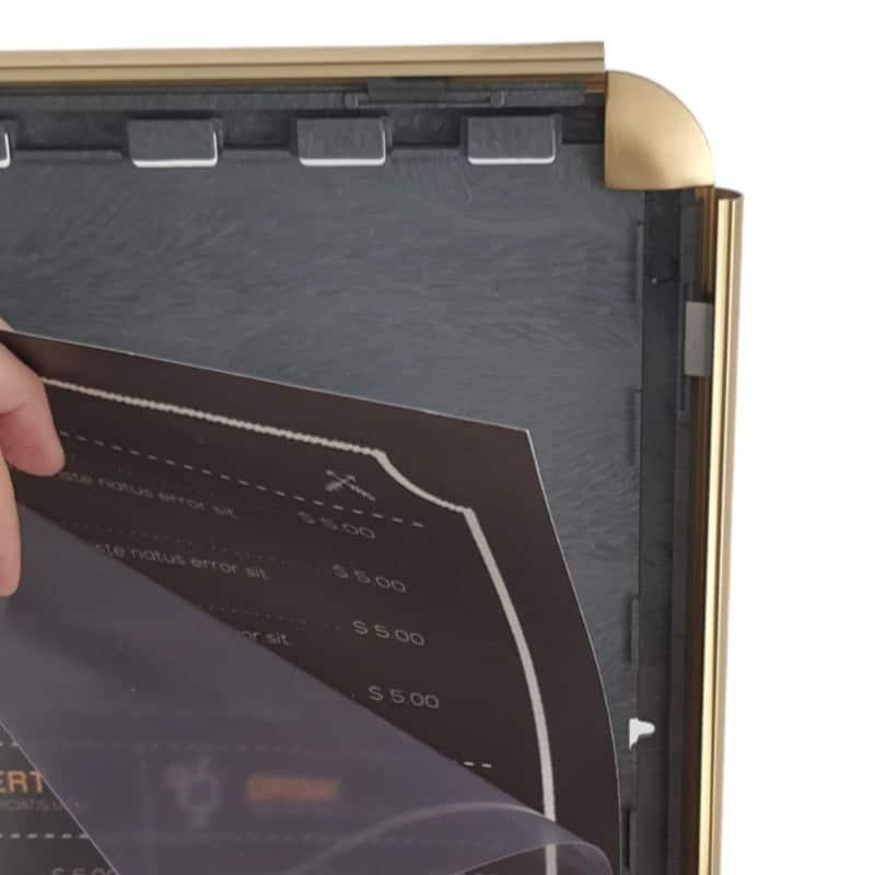 A3 Restoran Menü Panosu Gold ile premium müşterilerinize şık bir sunum yapın. Özellikle, altın kaplama detayları mekanınızın kalitesini vurgular.