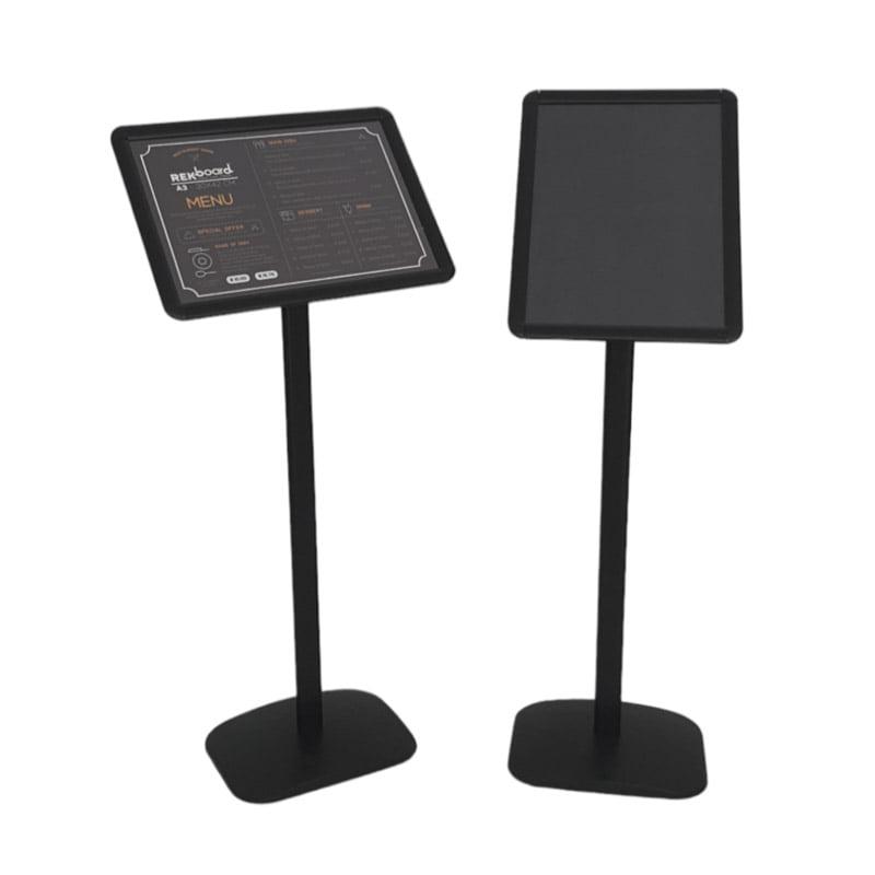 Ayaklı Siyah A3 Menü Standı, konuklarınıza modern bir deneyim yaşatır.