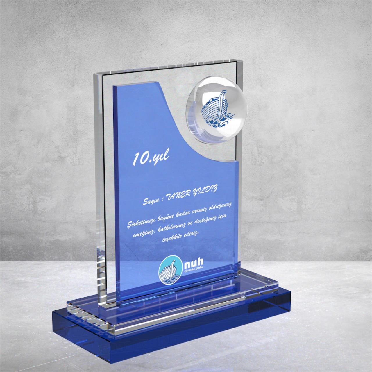 - **Benzersiz Detay:** Plakete derinlik katan mavi cam, ürüne premium bir hava katar.
