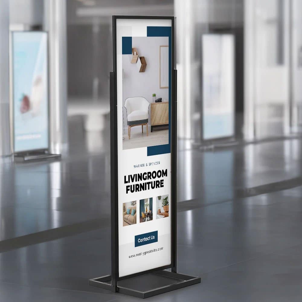Alüminyum Ayaklı Eko Poster Pano Siyah 50x170cm, ofislerde duyuru panosu olarak kullanabilirsiniz. Toplantı saatlerini, şirket içi haberleri veya önemli bilgileri, bu panolar aracılığıyla çalışanlara kolayca iletebilirsiniz. - Fuarlar ve Sergiler: