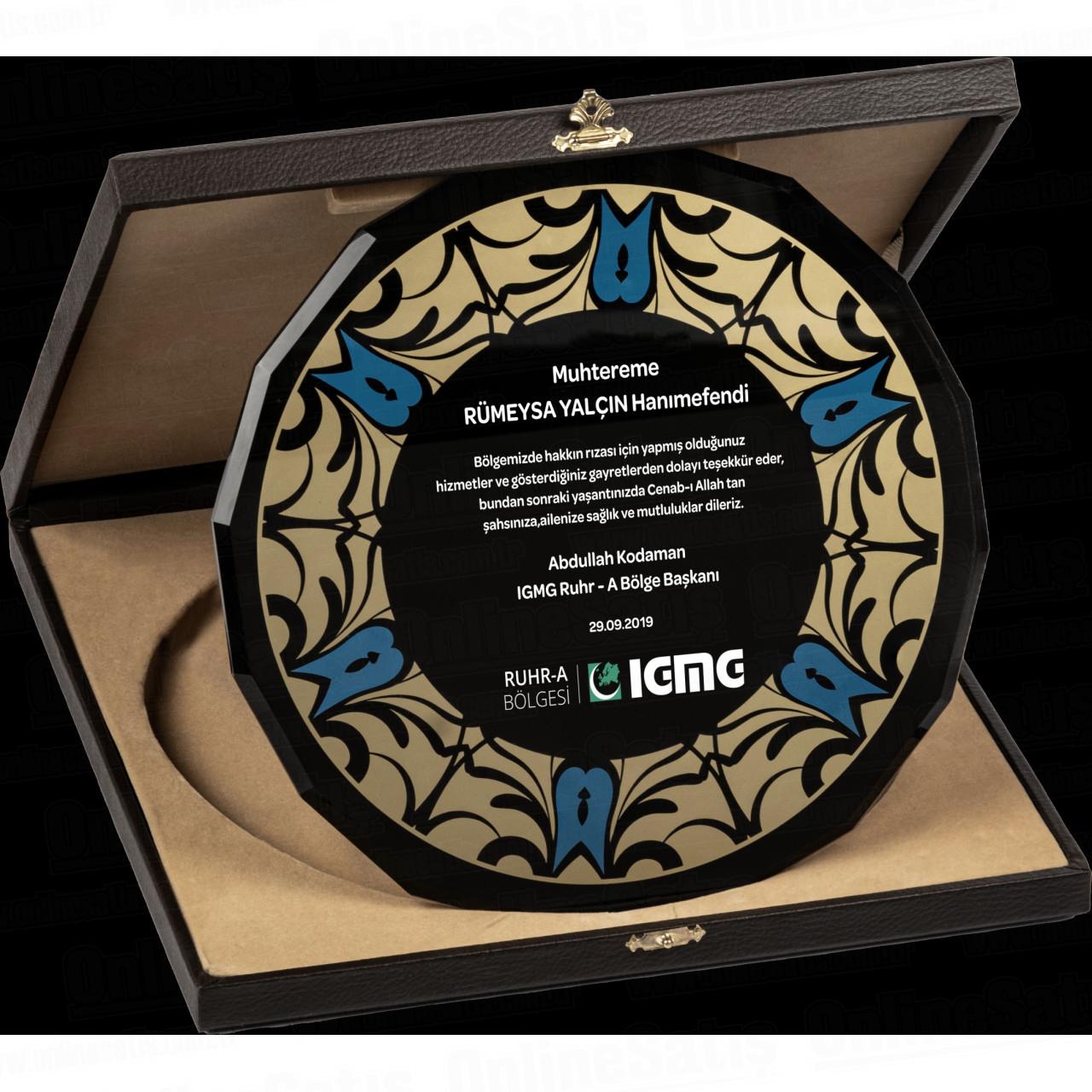 - **Özgün Tasarım:** Yuvarlak cam tabak yapısı, geleneksel dikdörtgen plaketlere modern ve farklı bir alternatif sunar.