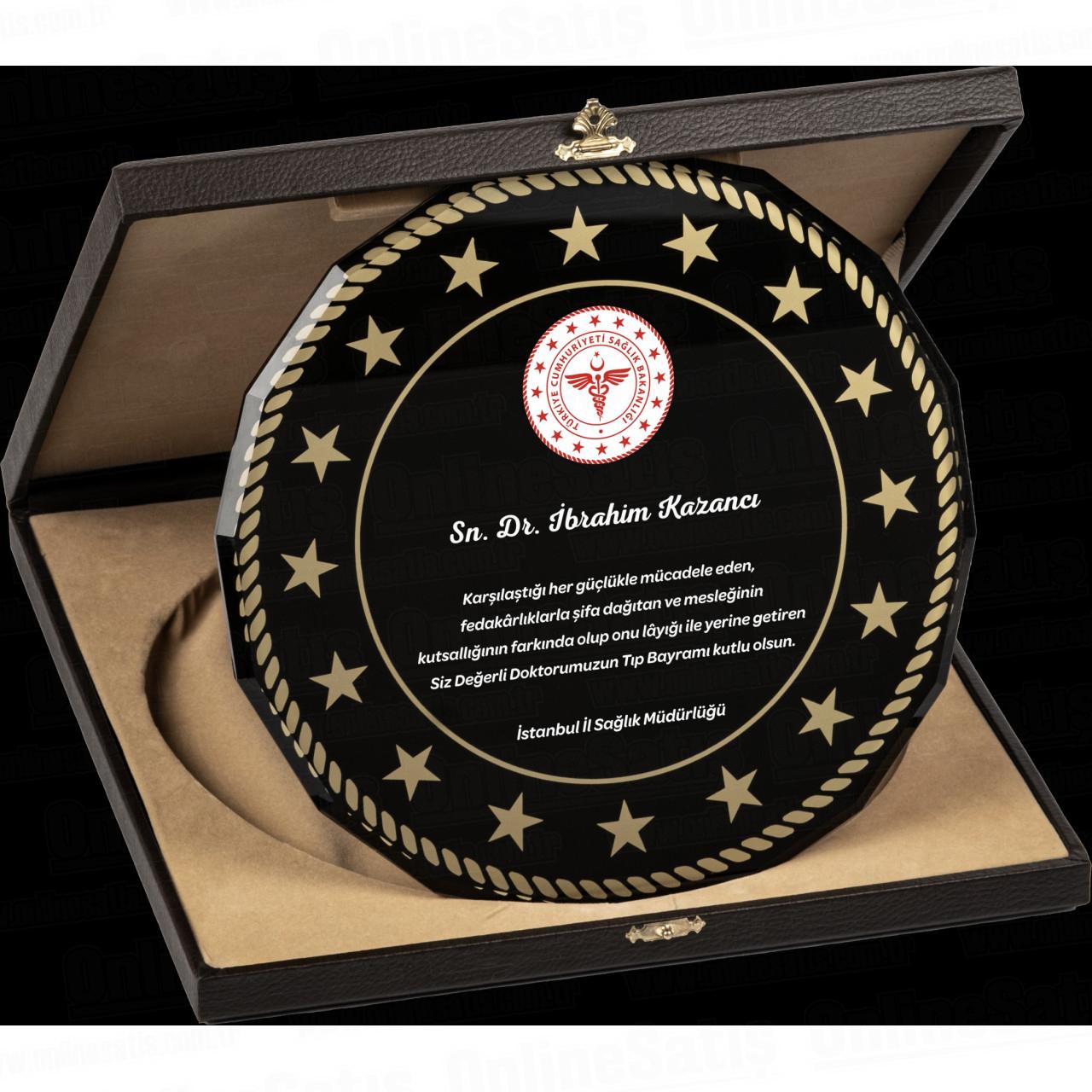 - **Özgün Tasarım:** Yuvarlak cam tabak yapısı, geleneksel dikdörtgen plaketlere modern ve farklı bir alternatif sunar.