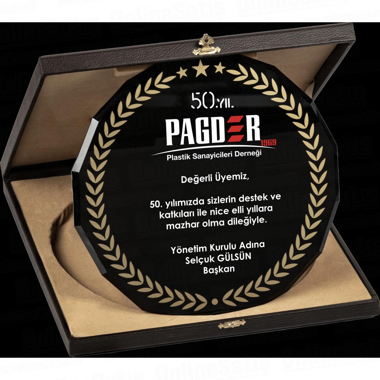 - **Özgün Tasarım:** Yuvarlak cam tabak yapısı, geleneksel dikdörtgen plaketlere modern ve farklı bir alternatif sunar.