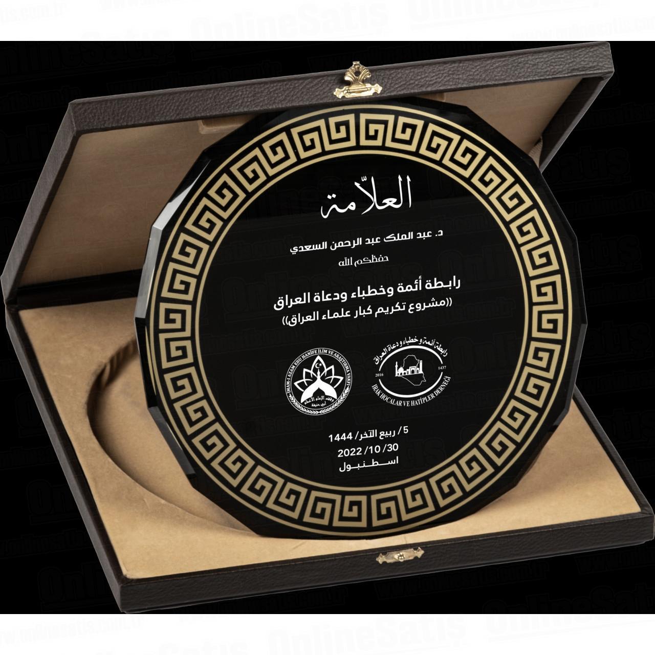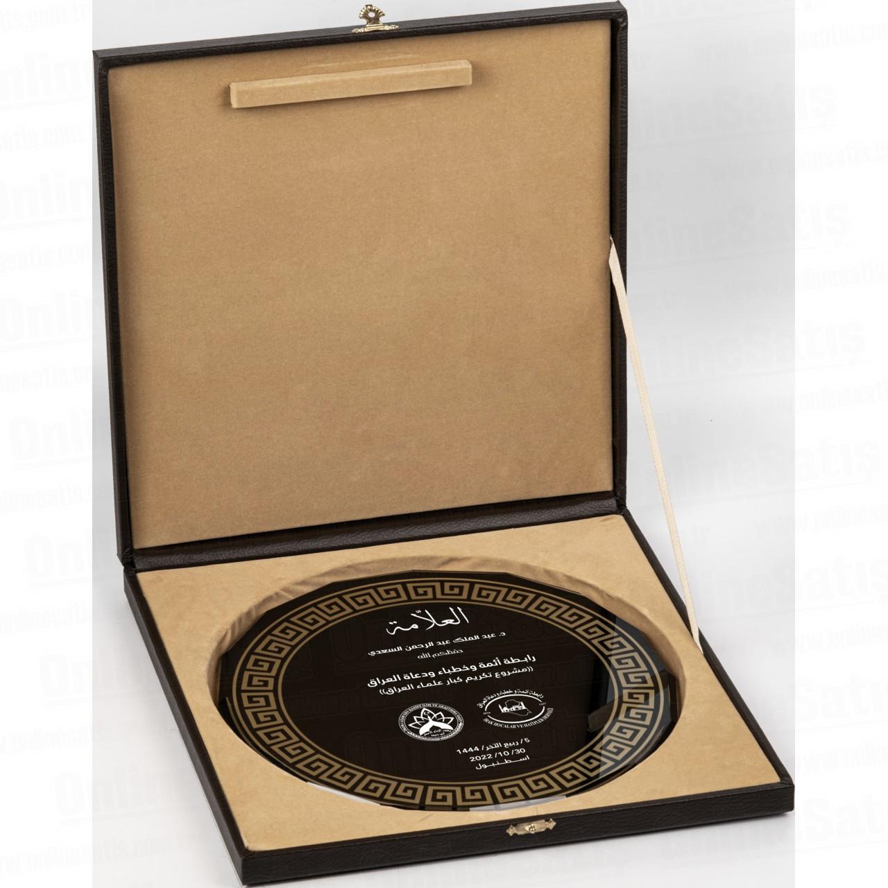- **Özgün Tasarım:** Yuvarlak cam tabak yapısı, geleneksel dikdörtgen plaketlere modern ve farklı bir alternatif sunar.