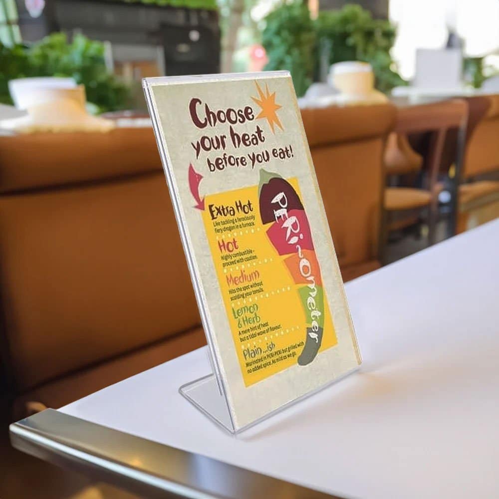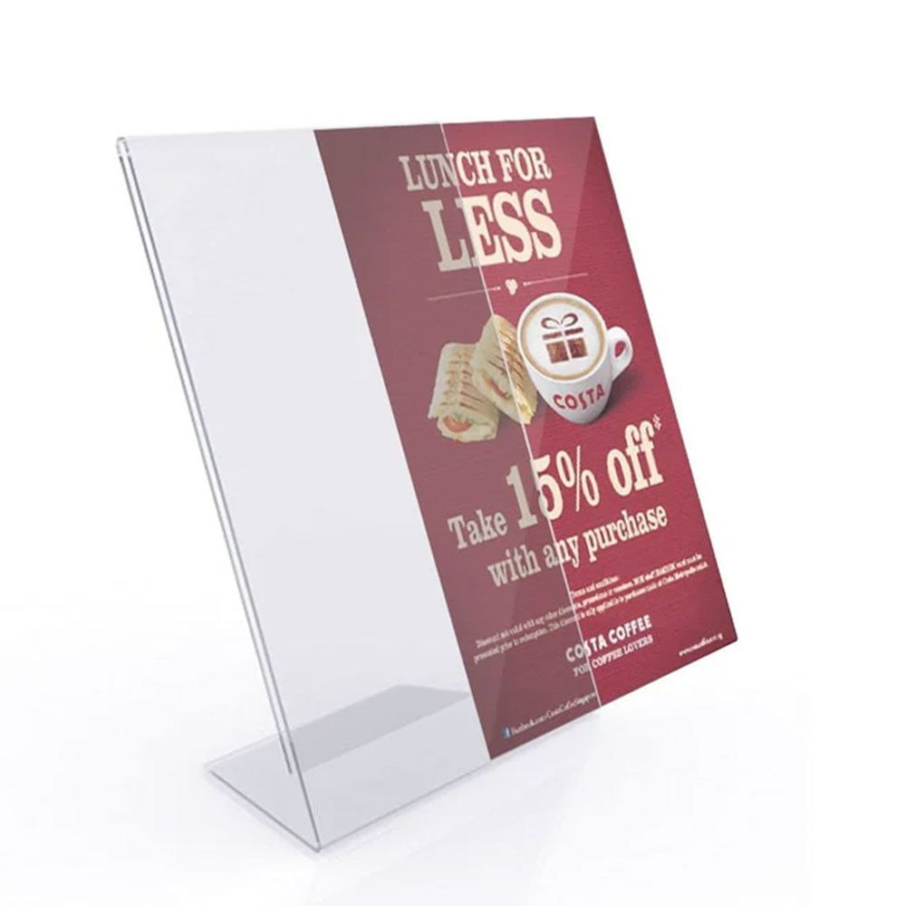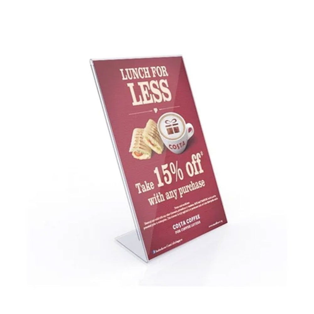- Mağazalar: L tipi dikey A5 pleksi menülük, fiyat listelerini veya kampanyaları sergilemek için kullanabilirsiniz. Bu sayede, müşterileriniz ürünlerin fiyatlarını kolayca görebilir.