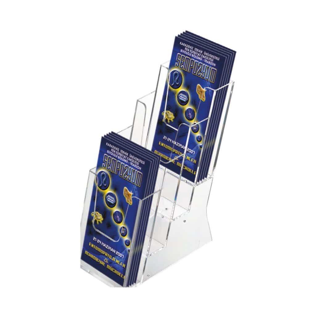 Masaüstü El ilanı Tutucu 4 Katlı 1/3 A4, işletmenize profesyonellik kazandırır. Masaüstü reklam stand 4 katlı 1/3 A4 ile el ilanlarınızı düzenli bir şekilde sergileyebilirsiniz. Ayrıca, masaüstü şeffaf el ilanı tutucu 4 katlı 1/3 A4, materyallerinizin içeriğini ön plana çıkarır.