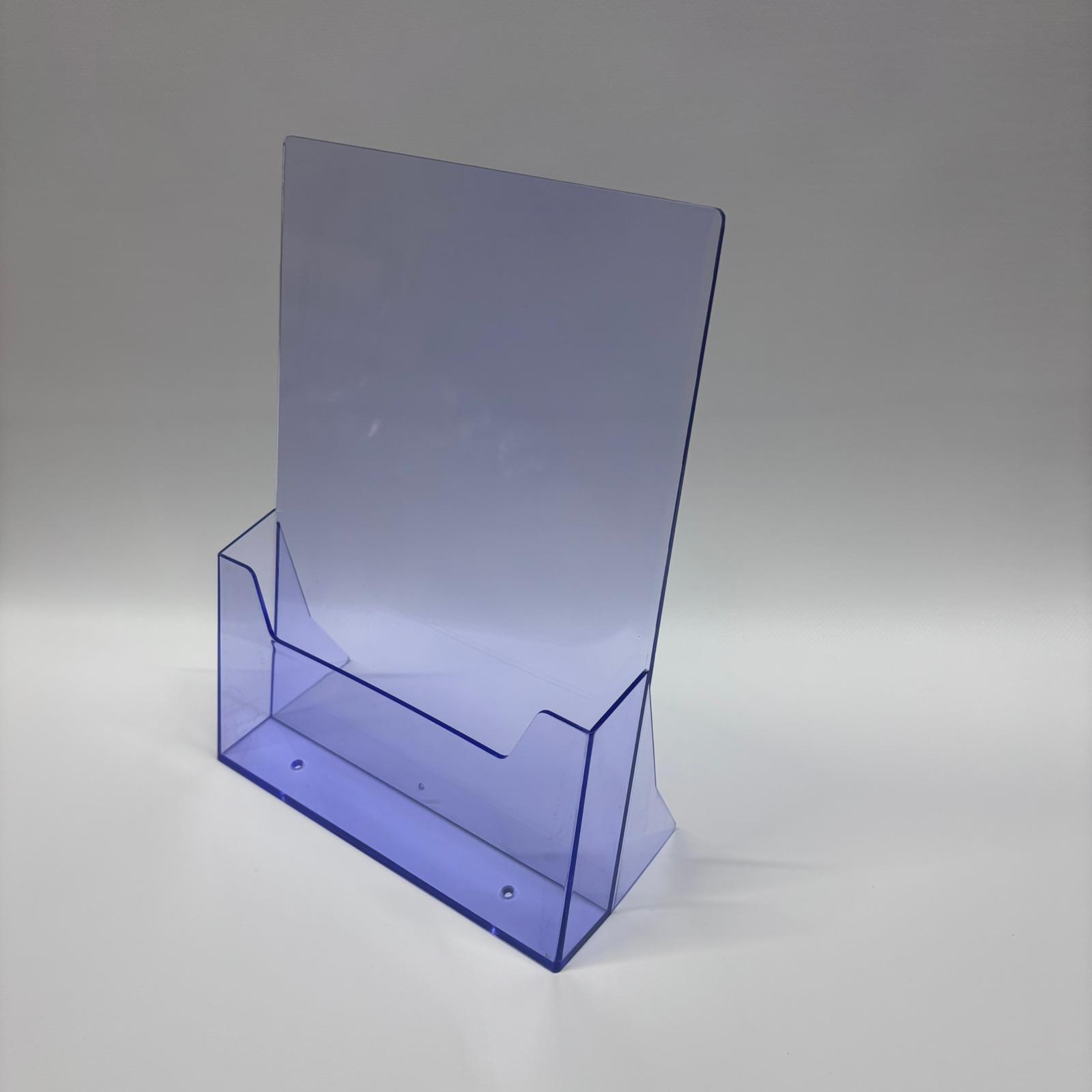 Masaüstü şeffaf mor el ilanı tutucu A4, tanıtım materyallerinizi dağınıklıktan kurtarır ve masa üzerinde düzenli bir sunum sağlar. 🗂️✅