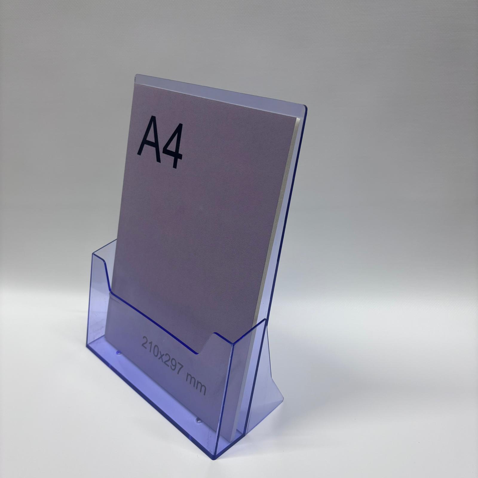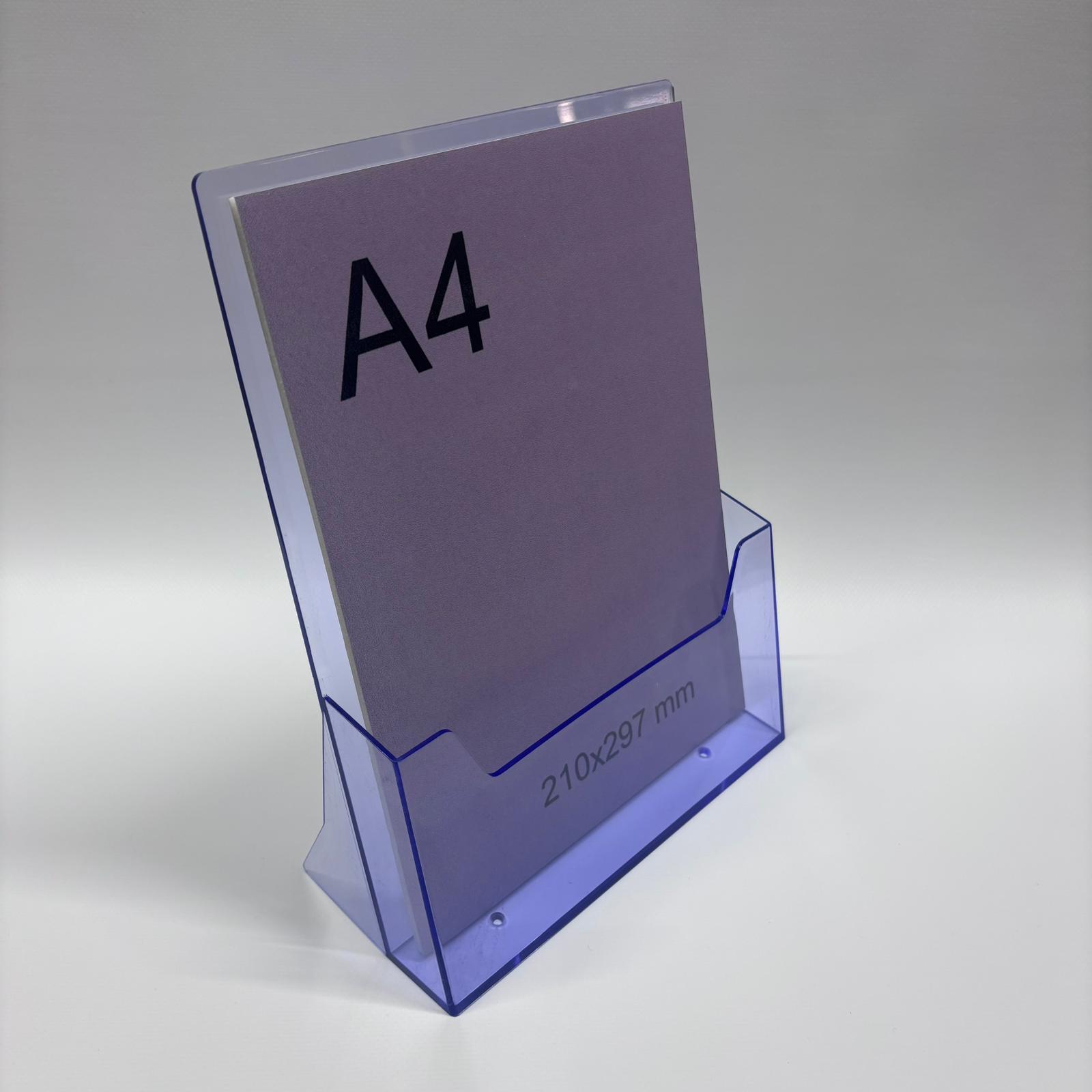 Masaüstü broşürlük A4’ün şeffaf mor versiyonu, broşürlerinizi, el ilanlarınızı ve reklam materyallerinizi düzenli, şık ve modern bir şekilde sergilemeniz için ideal bir çözümdür. ✨