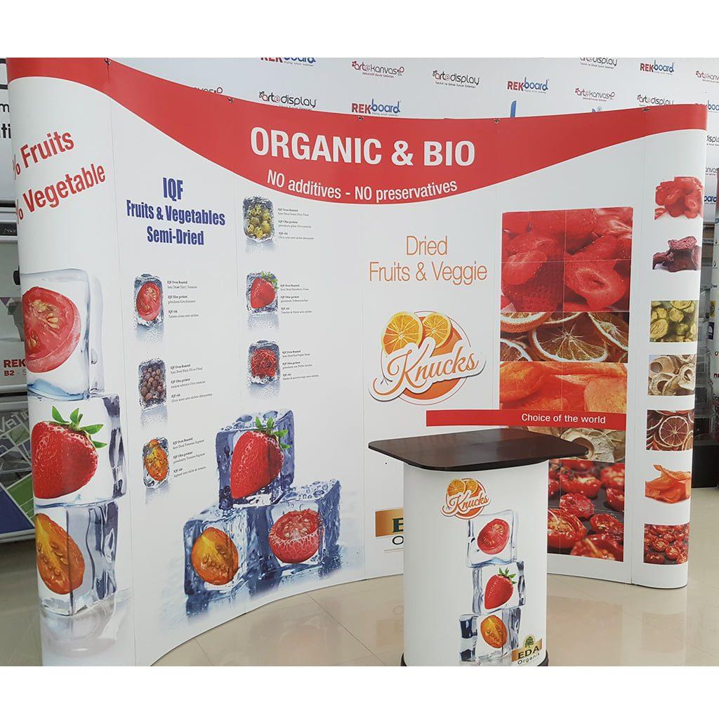 Yeni çıkan ürünlerinizin lansmanında profesyonel bir sunum alanı oluştururken, oval tasarımı sayesinde ürünlerinizi 360 derece sergileme imkanı sunar. Ayrıca geniş baskı alanıyla ürün özelliklerini etkileyici görsellerle aktarabilirsiniz. - 🎤 Konferans & Seminerler: