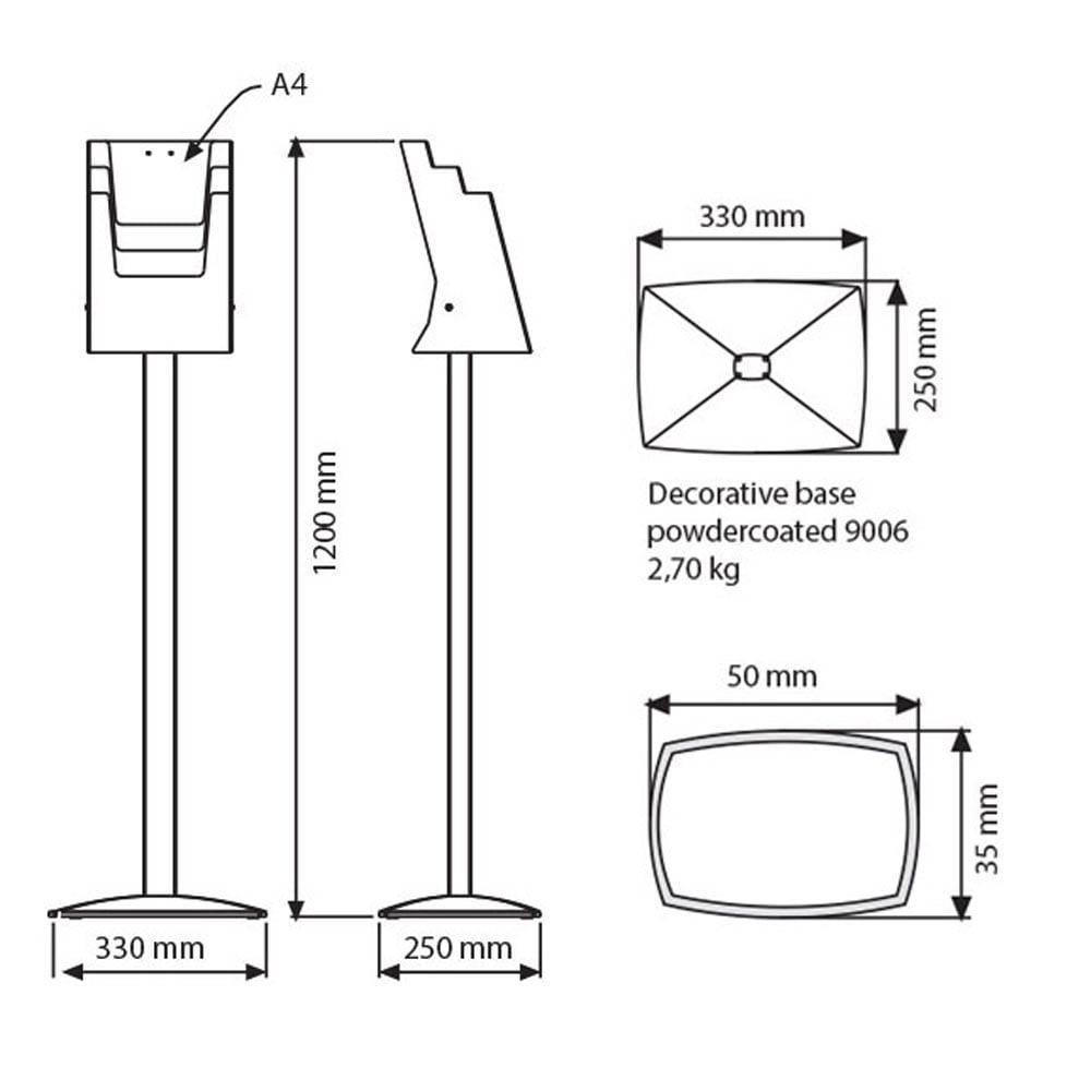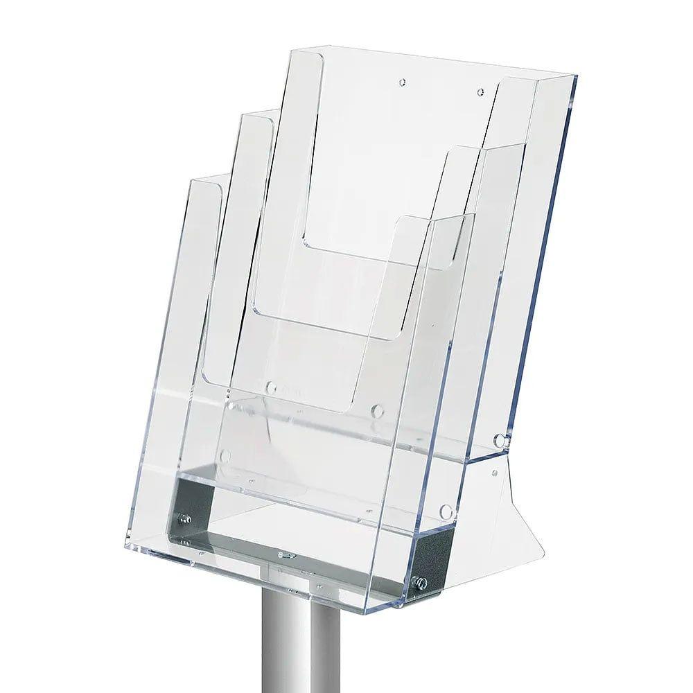 Enjeksiyon kalıp tekniğiyle tek parça olarak üretilmiştir. Bu sayede uzun ömürlü ve dayanıklıdır. Ayaklı Pillar Broşür Stand 3xA4, özellikle kalabalık mekanlarda bile stabil duruşuyla güven verir.