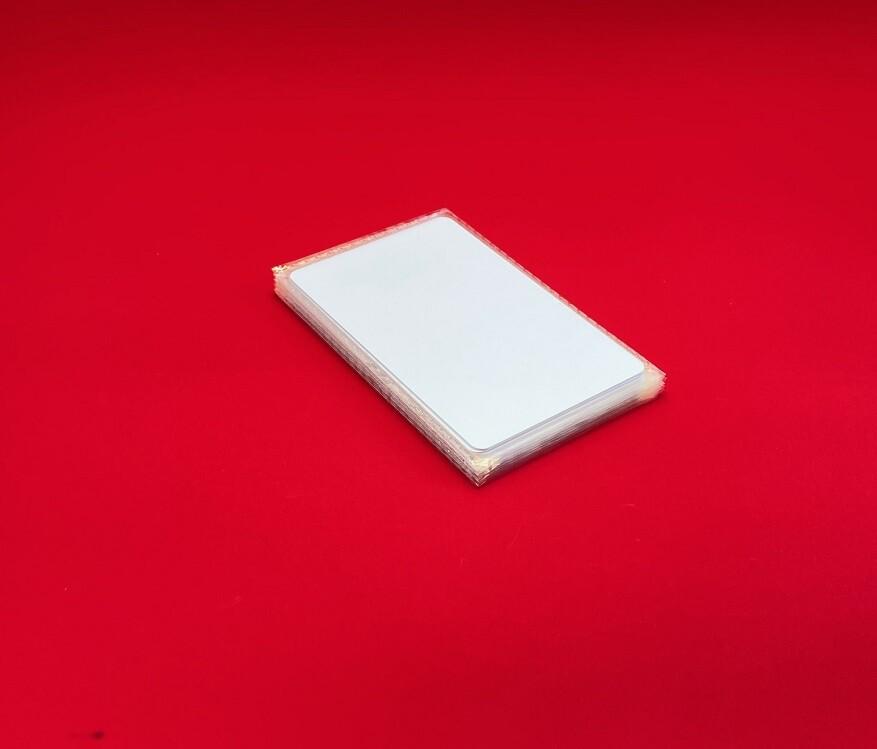 Baskısız boş beyaz pvc kartlar tek tek poşetleri içerisindedir.