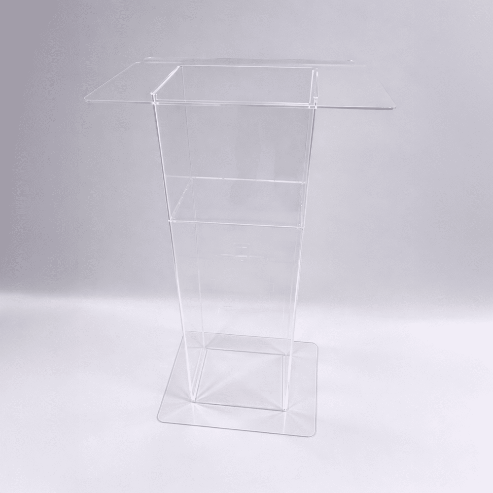 Akrilik konuşma kürsüsü, konuşmacının ön planda olmasını sağlar ve dikkat dağıtmayan tasarımıyla sunum kalitesini artırır. Logo etiketleme veya kurumsal aksesuarlarla kişiselleştirilmeye de uygundur.
