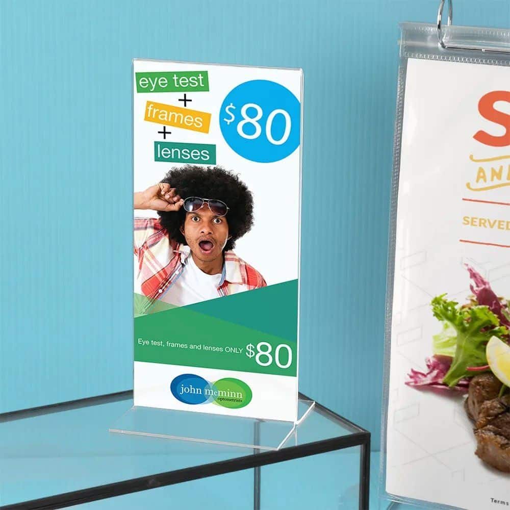 - Mağazalar: Masaüstü Pleksi Menü Tutucu T Tipi 1/3 A4 Dikey, ürün fiyatlarınızı veya kampanyalarınızı sergilemek için idealdir.