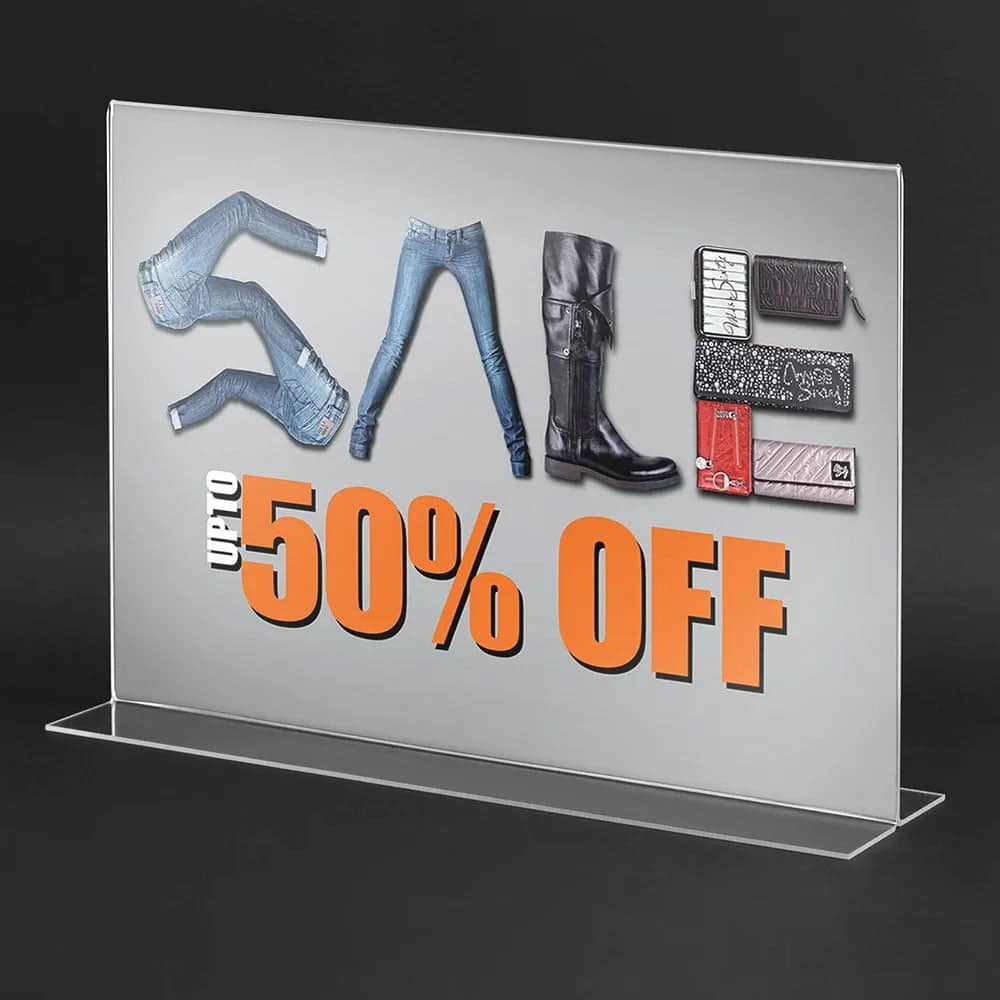 - Mağazalar: Şeffaf pleksi fiyatlık T tipi A3 yatay, ürün fiyatlarını veya kampanyalarını sergilemek için idealdir.