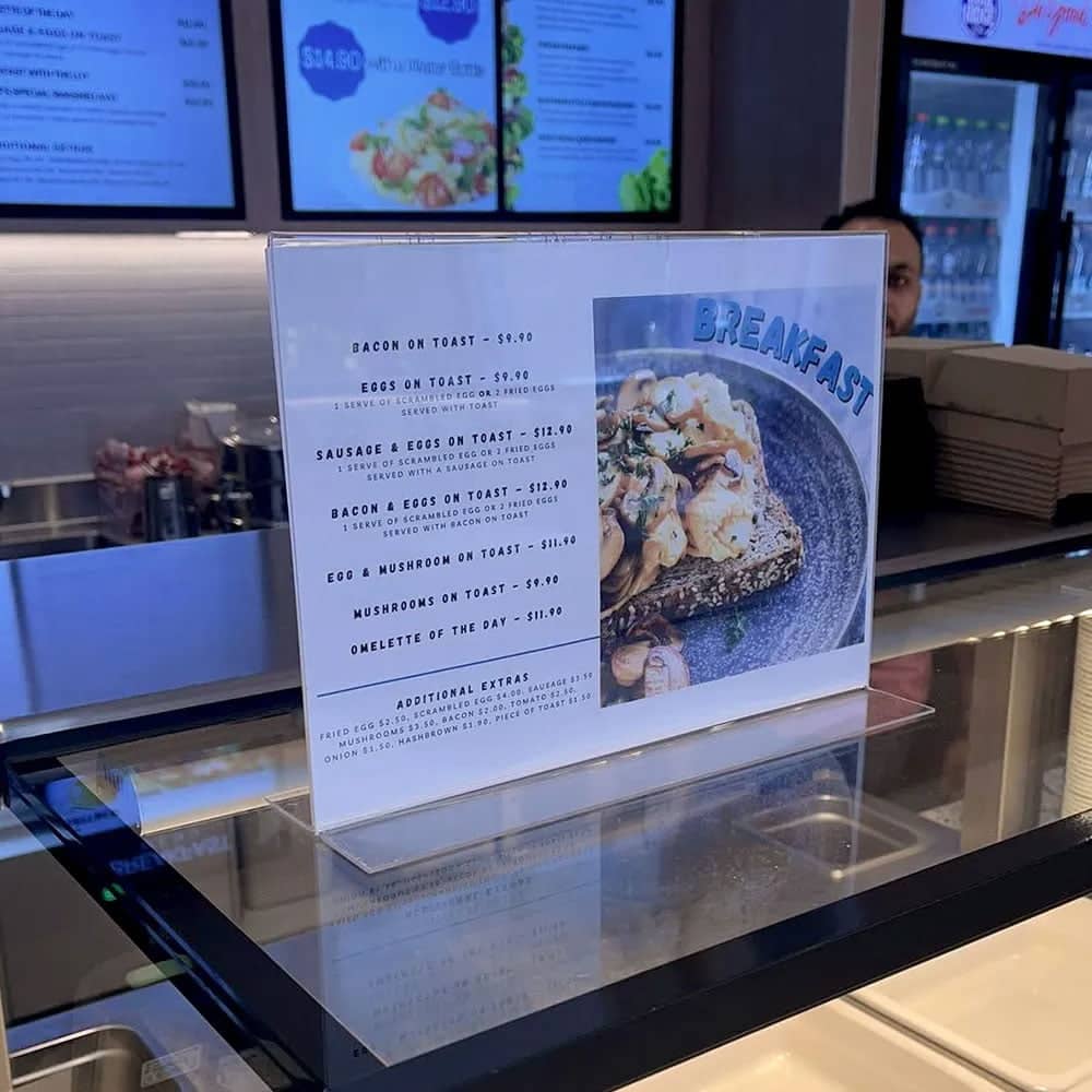 - A3 Boyutu: T tipi yatay A3 pleksi föylük, geniş içerik alanı sunar. Bu sayede, detaylı menüler veya fiyat listeleri rahatlıkla sergilenebilir.