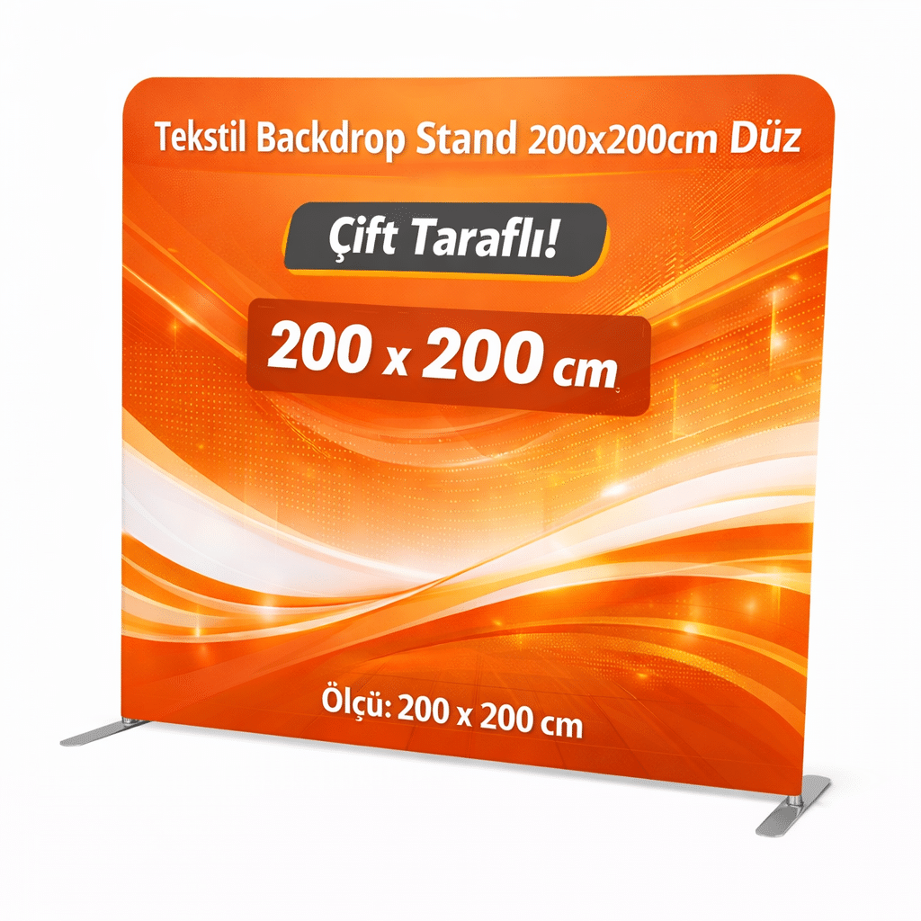 Sahne Arkası Backdrop Stand 200x200cm Düz olarak basın toplantıları, röportajlar ve lansmanlarda sıkça tercih edilir. Aynı zamanda Tekstil backdrop fuar stand 200x200cm Düz çözümü olarak fuar ve sergilerde markanızın arka planını güçlü bir şekilde tamamlar. Mağaza içi tanıtımlar, showroom alanları ve fotoğraf çekimleri için de ideal bir üründür.