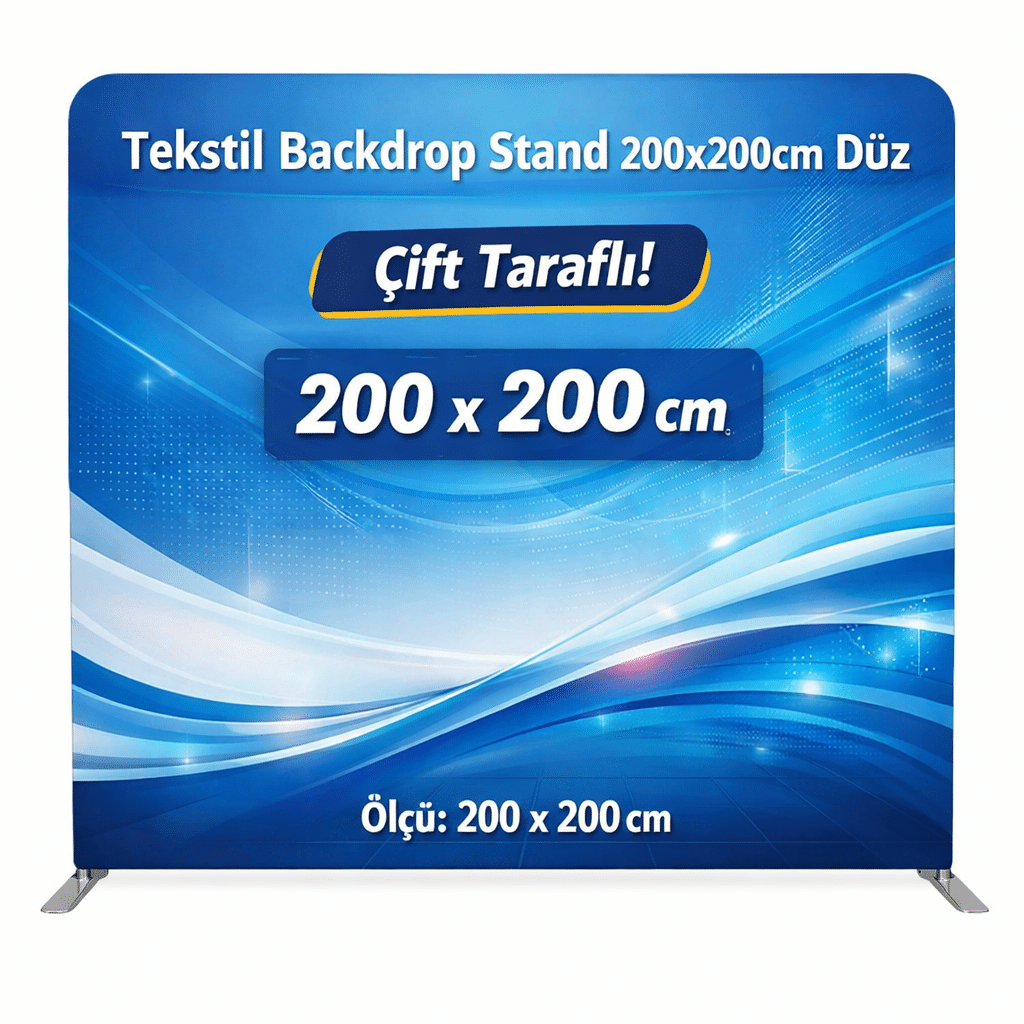 Tekstil backdrop sistemleri, klasik sert panolara kıyasla daha hafif, daha estetik ve çok daha pratiktir. Tekstil Backdrop Stand 200x200cm Düz, sade tasarımıyla her marka kimliğine uyum sağlar, baskı kalitesi sayesinde mesajınızı net ve etkili biçimde yansıtır. Uzun süreli kullanıma uygun yapısı ve taşınabilirliği ile hem ekonomik hem de profesyonel bir çözümdür.