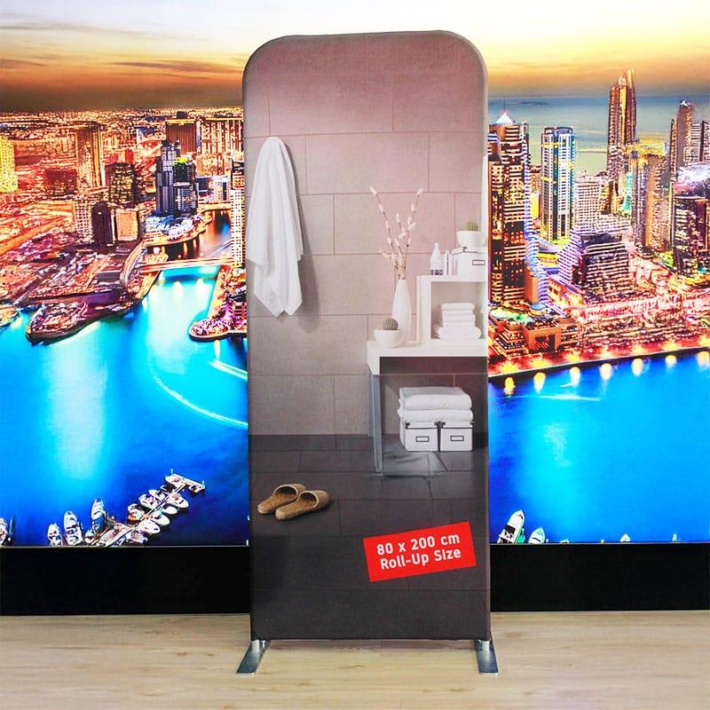 Çift Taraflı Kumaş Roll Up 120×220 cm, birçok alanda etkili bir tanıtım aracıdır: