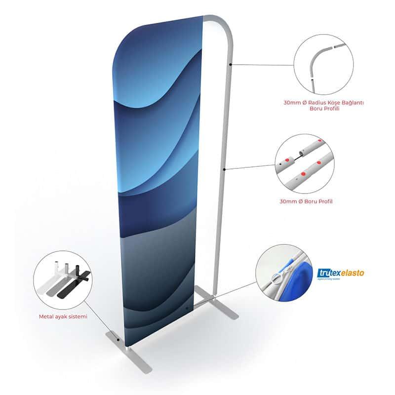 🔄 Çift Taraflı Kullanım: 120×220 cm Kumaş Tekstil Rollup Banner, iki yönlü baskı özelliğiyle daha fazla görünürlük sağlar.