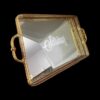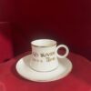 Heybeli çay bardağına, tabağına çay deseni, ‘LOGOLU’ yazısı ve çay desenlerinin tamamı el işçiliği ile desenlenmiş olup kumlama tekniği kullanılarak cam aşındırılmıştır.