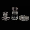 Su bardağına ve İnce belli çay bardağına, tabağına çay deseni, ‘LOGOLU’ yazısı ve çay desenlerinin tamamı el işçiliği ile desenlenmiş olup kumlama tekniği kullanılarak cam aşındırılmıştır.