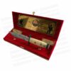 Özel misafirleriniz, yöneticileriniz, müşterileriniz için kişiye özel tasarlanabilen kılıç ve bıçak seti özel olarak üretilen kadife kutuda.
