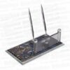 17cm x 30 cm ebatındanda olan masa isimliği 9 cm Yüksekliğinde Gümüş renk saati ve çift kalemi, kartvizit alanı ve oval kesimleri ile, kibar duruşu ile masanıza katacağı güzel görüntüden şüpheniz olmasın.