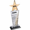 Yıldız plaket, kristal cam levhanın tamamen yıldız şeklinde tasarlanması ya da yüzeyin belirli bir alanına yıldız monte edilmesi ile oluşmaktadır. Levhanın orta bölgesinde, zemininde ya da üst köşelerinde yıldız sembolü bulunmaktadır. Yıldız plaket imalatı esnasında özel kesim ünitesi kullanılmakta ve pürüzsüz bir yıldız ortaya çıkmaktadır. Bazı yıldızlı plaket modellerinde yıldızın üretimi için metal seçilmekte ya da metalik renkte cam tercih edilmektedir.