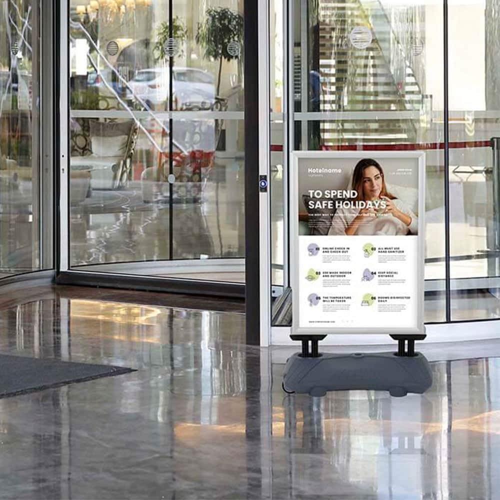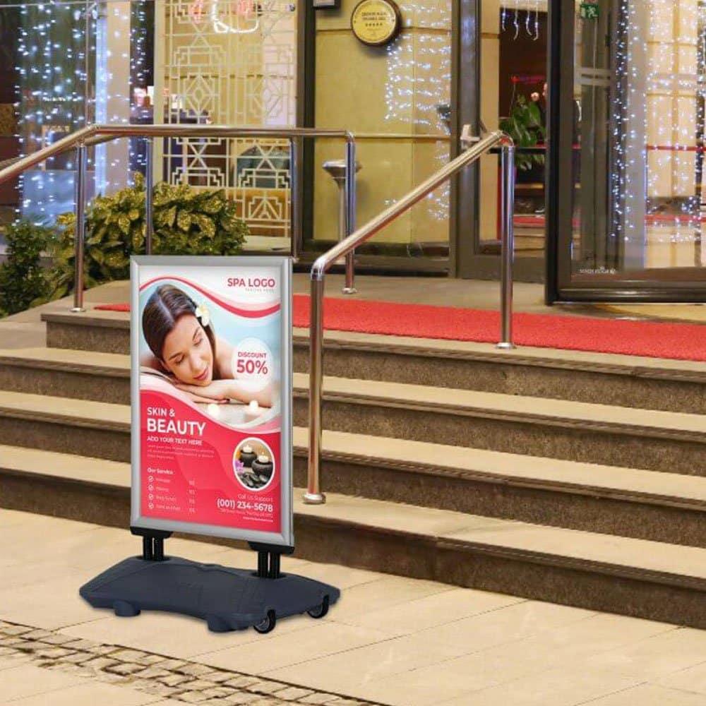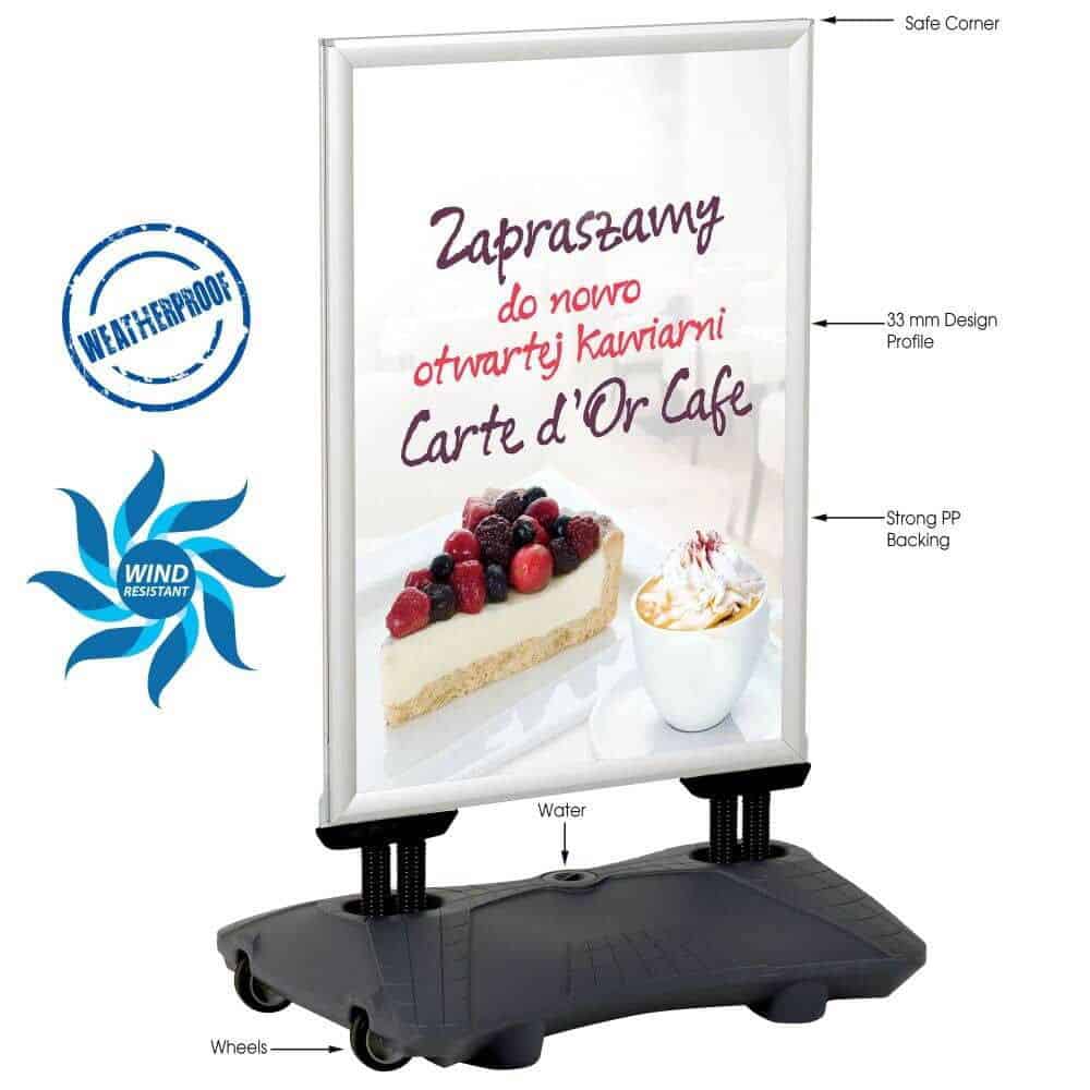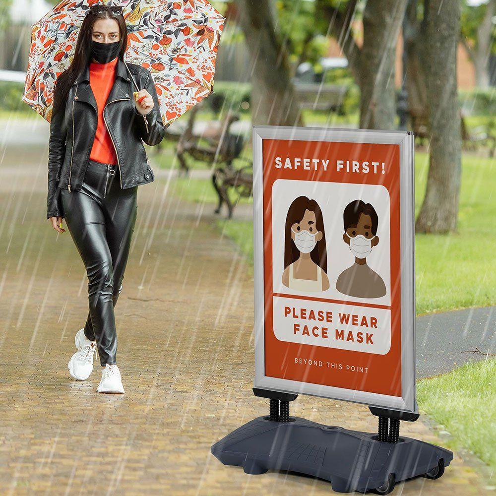 - Taşınabilir Tasarım: Alt bidonundaki tekerlekler sayesinde panoyu istediğiniz yere kolayca taşıyabilirsiniz. Ayrıca bidona su doldurarak daha fazla ağırlık ve stabilite sağlayabilirsiniz.