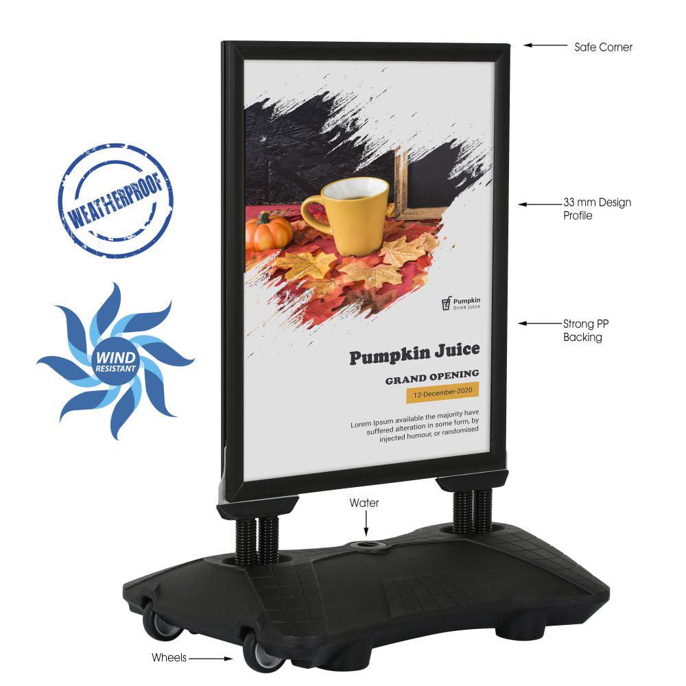 Siyah renk seçeneği, şık ve modern bir görünüm kazandırır. Bu sayede, reklam panosu hem işlevsel hem de estetik bir araç haline gelir.