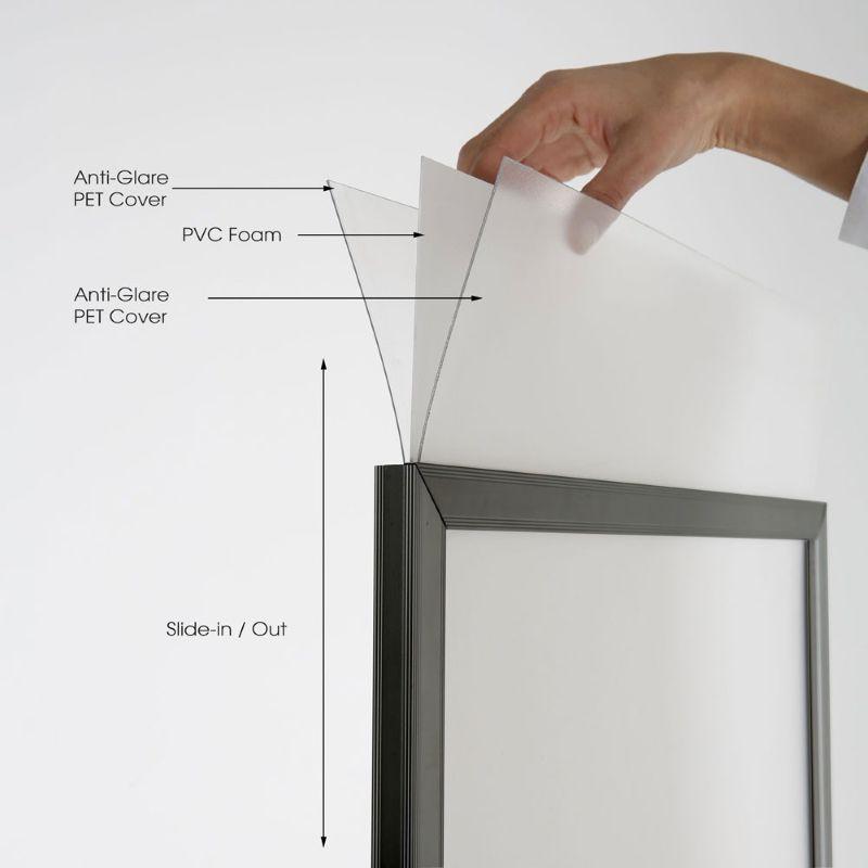 Anti-Refleks Poster Koruma 👁️: Dahili 2x anti-refleks koruma ve ayırıcı ile reklamlarınız her koşulda net görünür.
