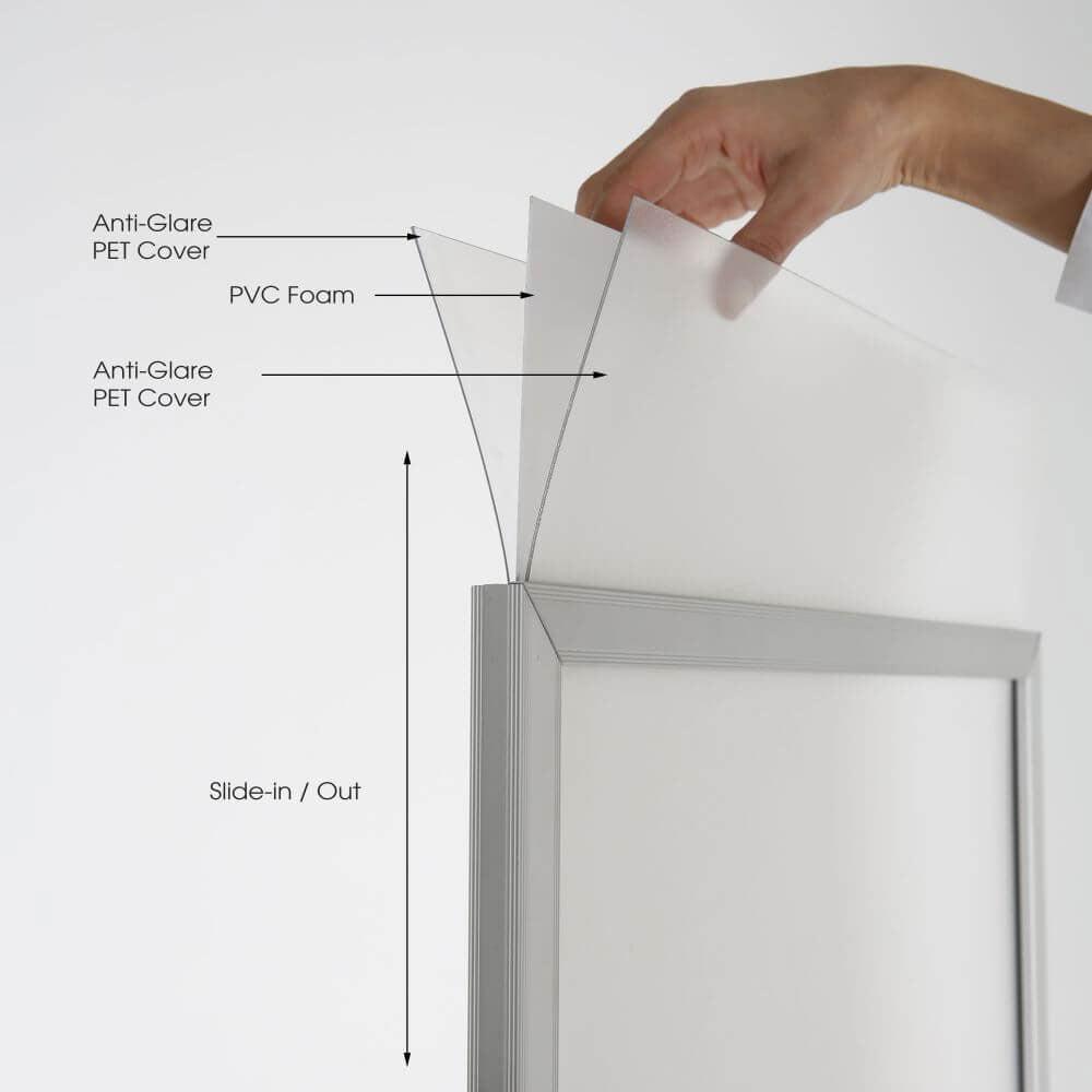 - Poster Sabitleme: Poster, kapak ile arkalık arasında sağlam bir şekilde sabitlenmiştir.