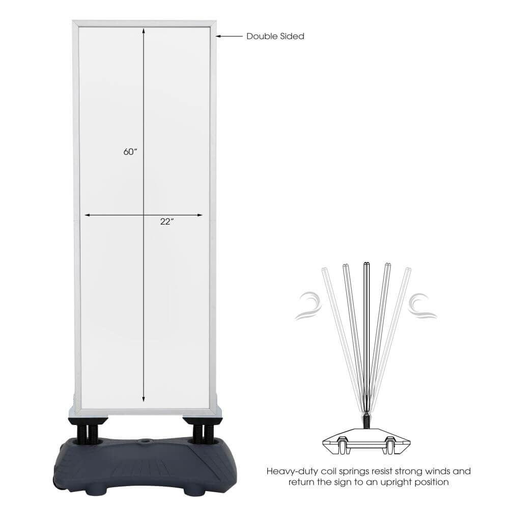 - Çift Taraflı Kullanım: Çift Taraflı Wind Pro Slim Gri Kaldırım Panosu, reklamlarınızın daha geniş bir alanda görünür olmasını sağlar. Bu özellik, özellikle yoğun geçiş noktalarında etkili bir reklam stratejisi sunar.
